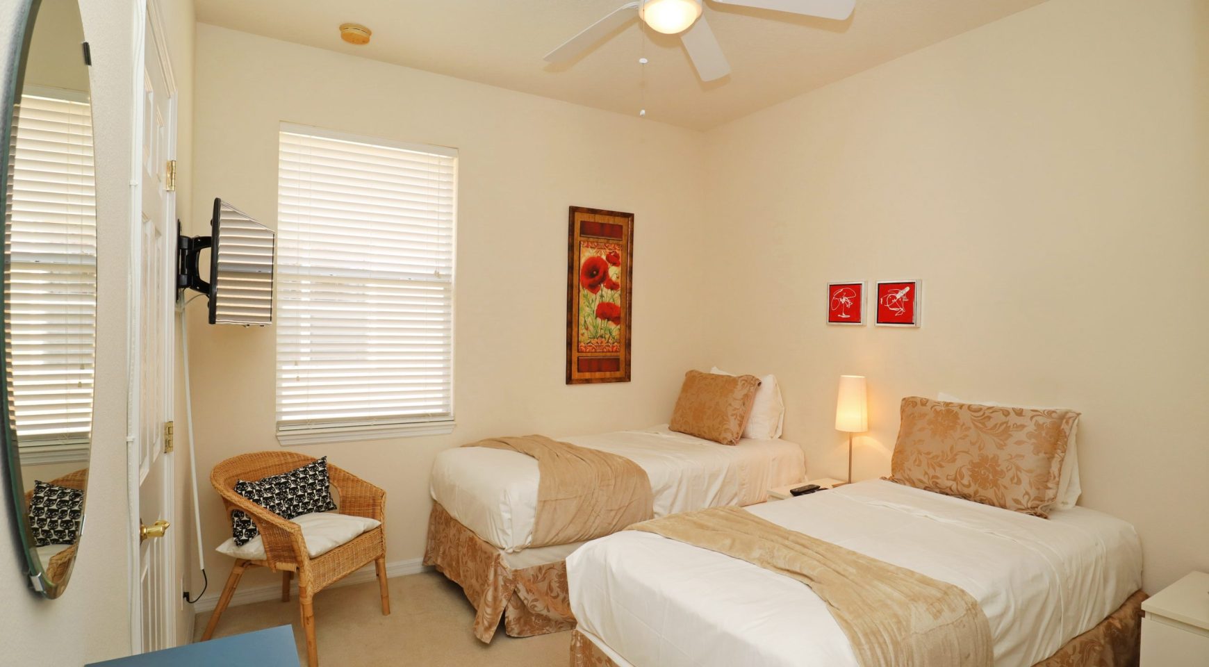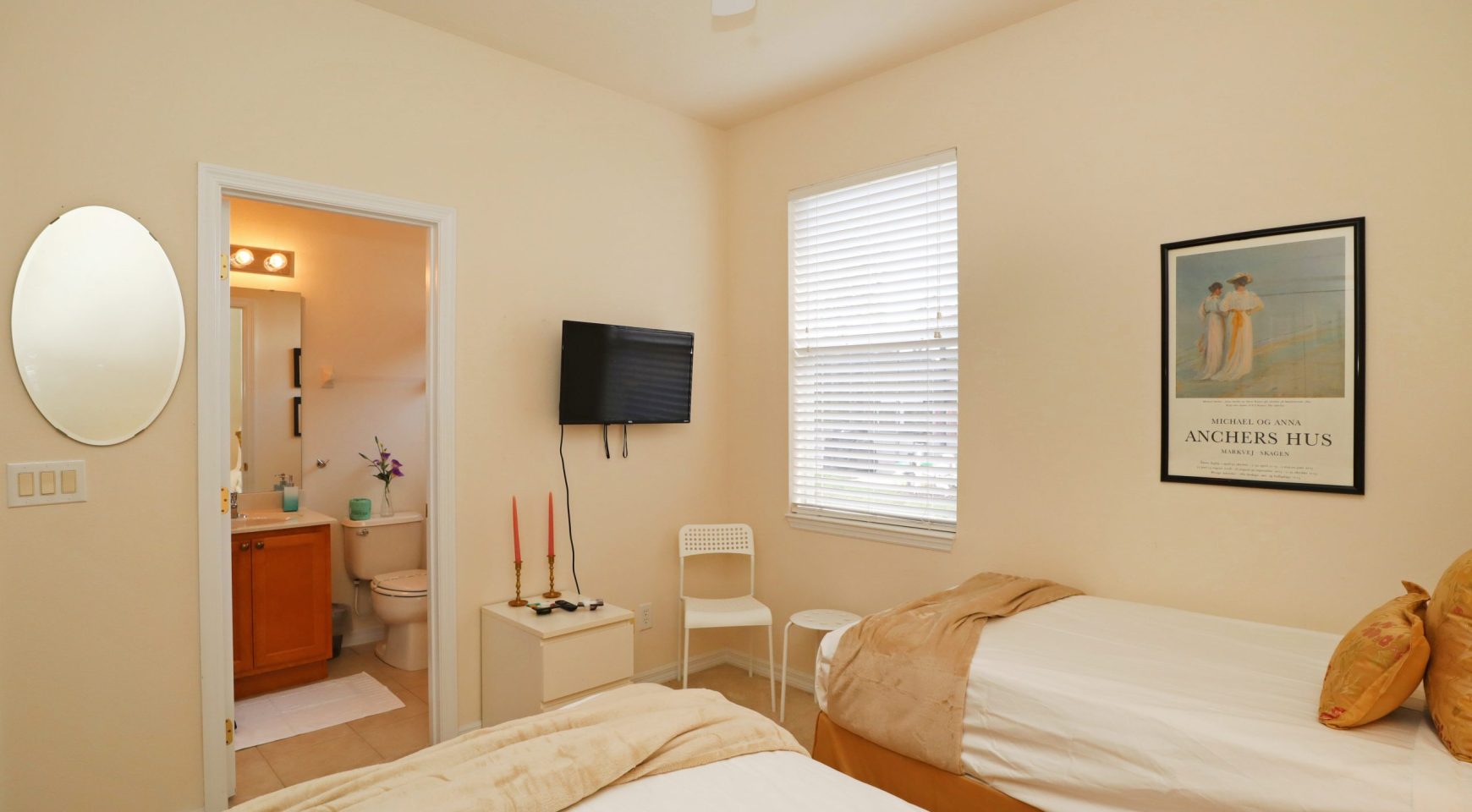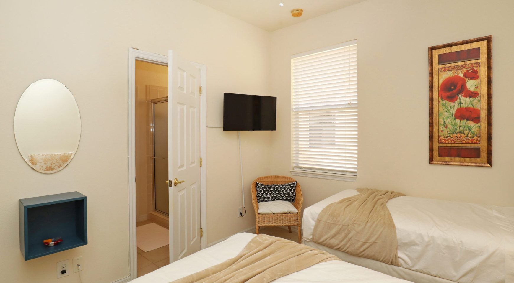 * HABITACIÓN TWIN 2: Camas cómodas. Baño privado. SmartTV de 35 pulgadas. Amplio closet con iluminación interior.