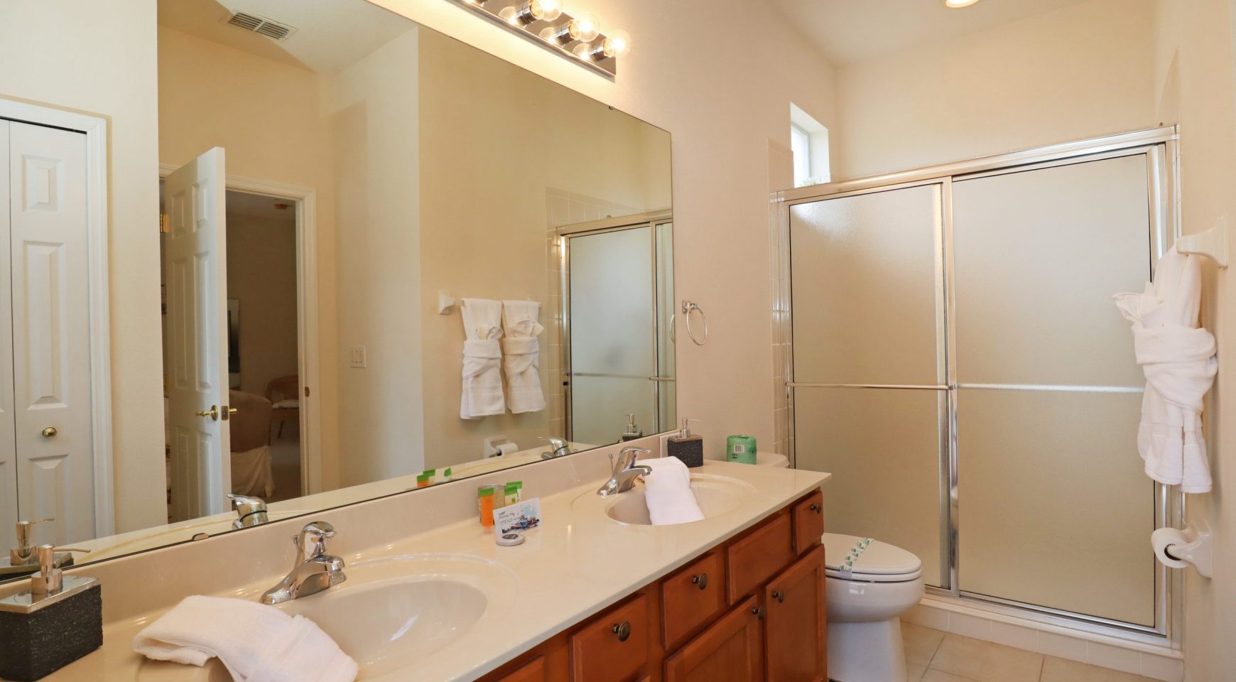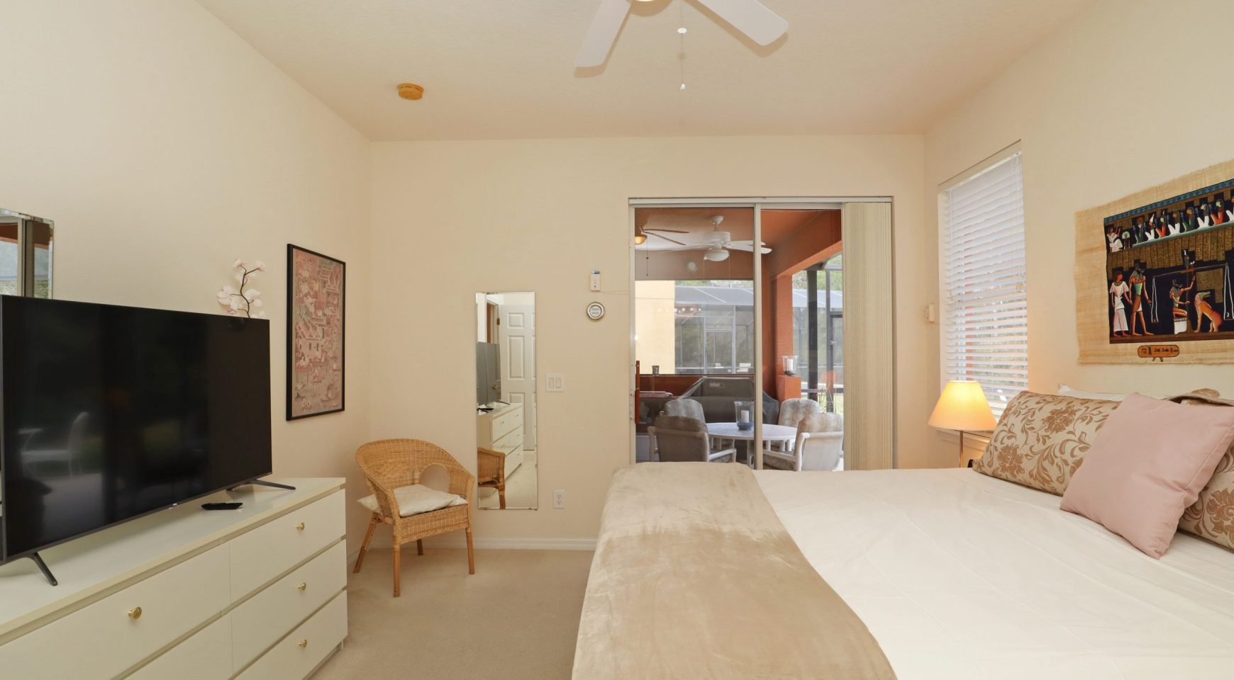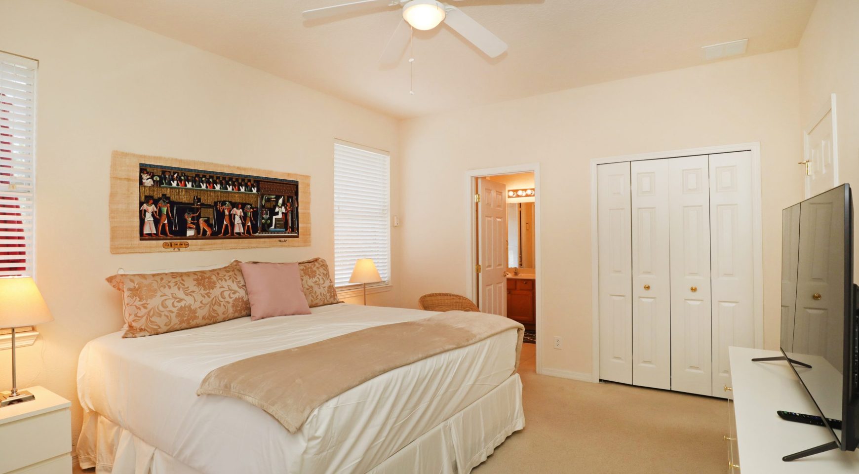 * DORMITORIO PRINCIPAL: Ropa de cama súper cómoda. Acceso directo a la piscina. Baño privado con jack y jill. Smart TV de 50” y cable. Closet con iluminación interna. Hermosa decoración.