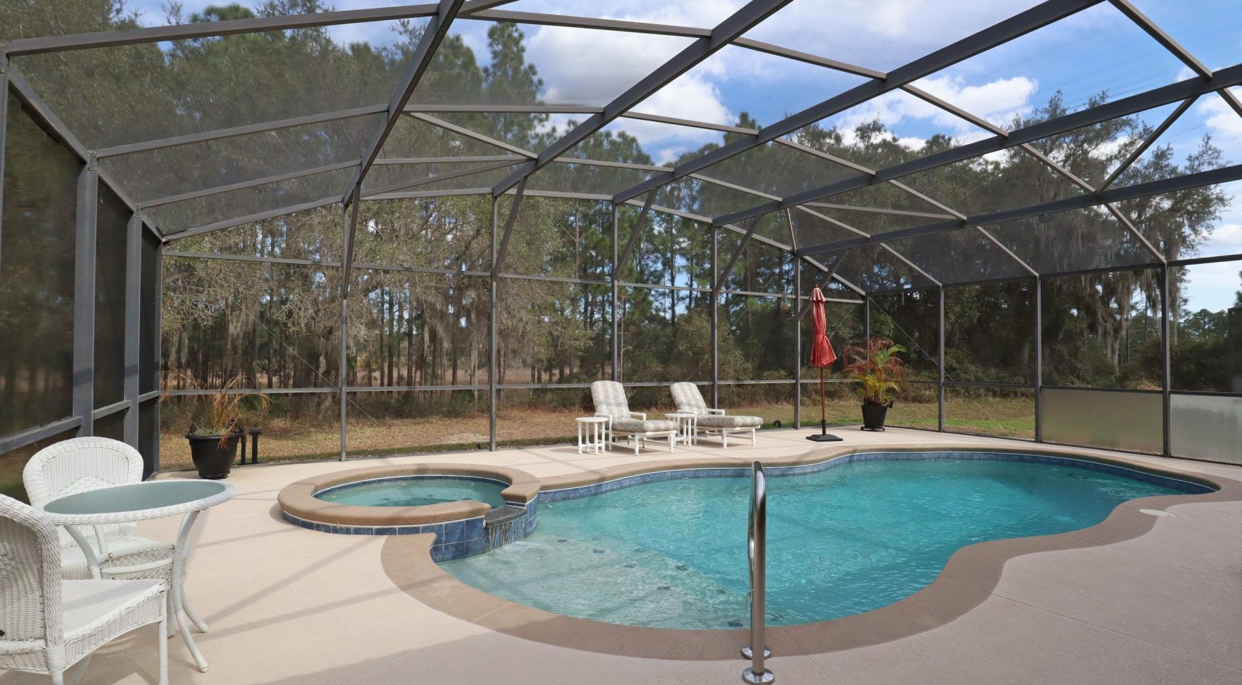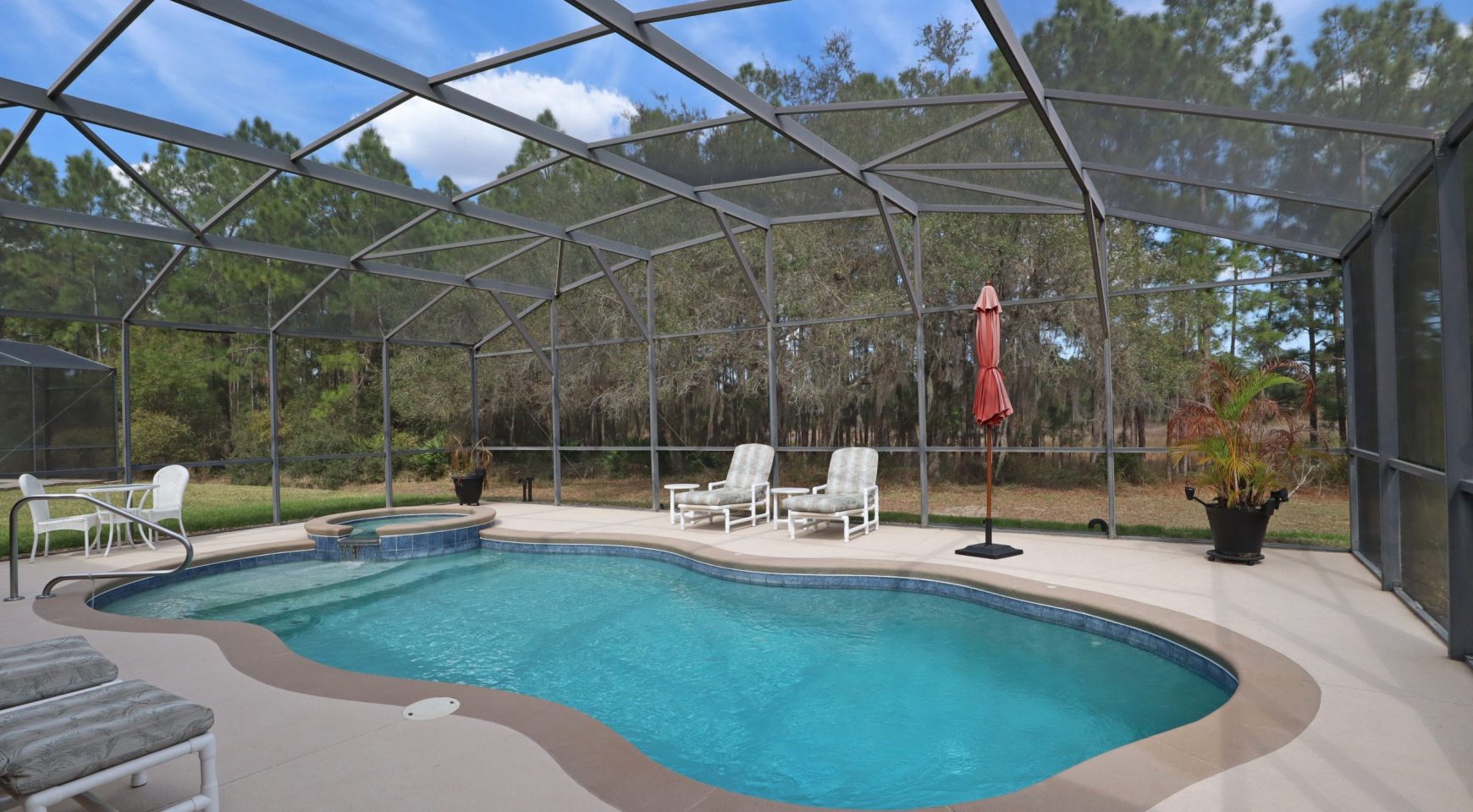 Lo más destacado de esta villa debe ser la espectacular instalación de piscina privada, más grande de lo estándar, con su burbujeante jacuzzi con vistas a una hermosa zona boscosa.