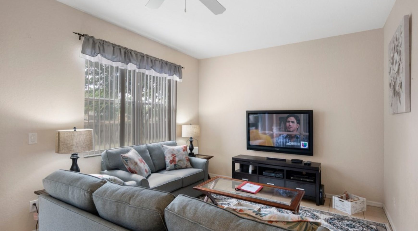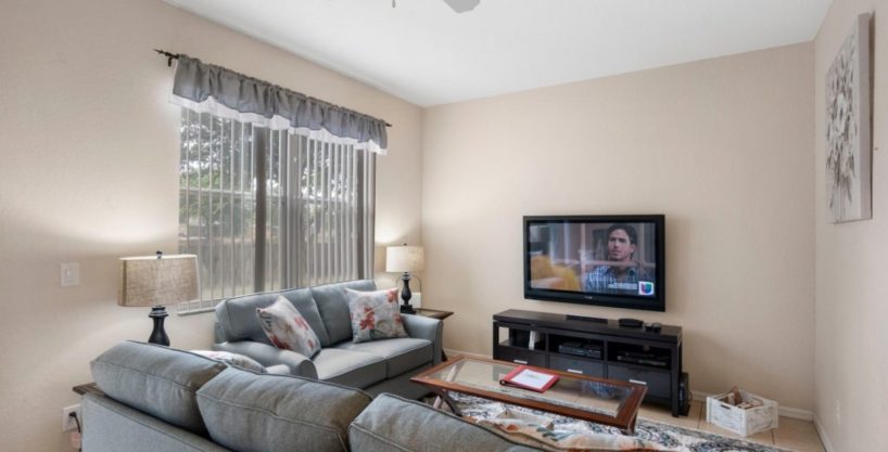 SALA DE ESTAR: Sala de estar confortável e aconchegante com decoração aconchegante, DVD player e TV de tela plana. Este é o lugar perfeito para descontrair e relaxar após um longo dia nos parques.